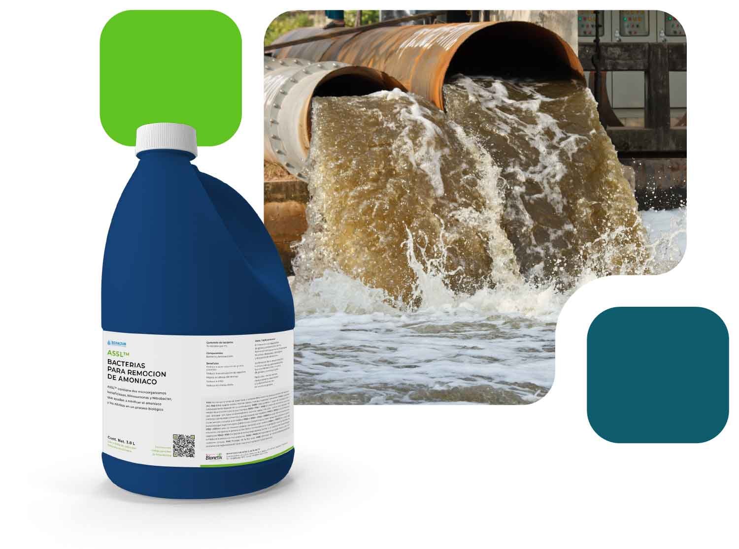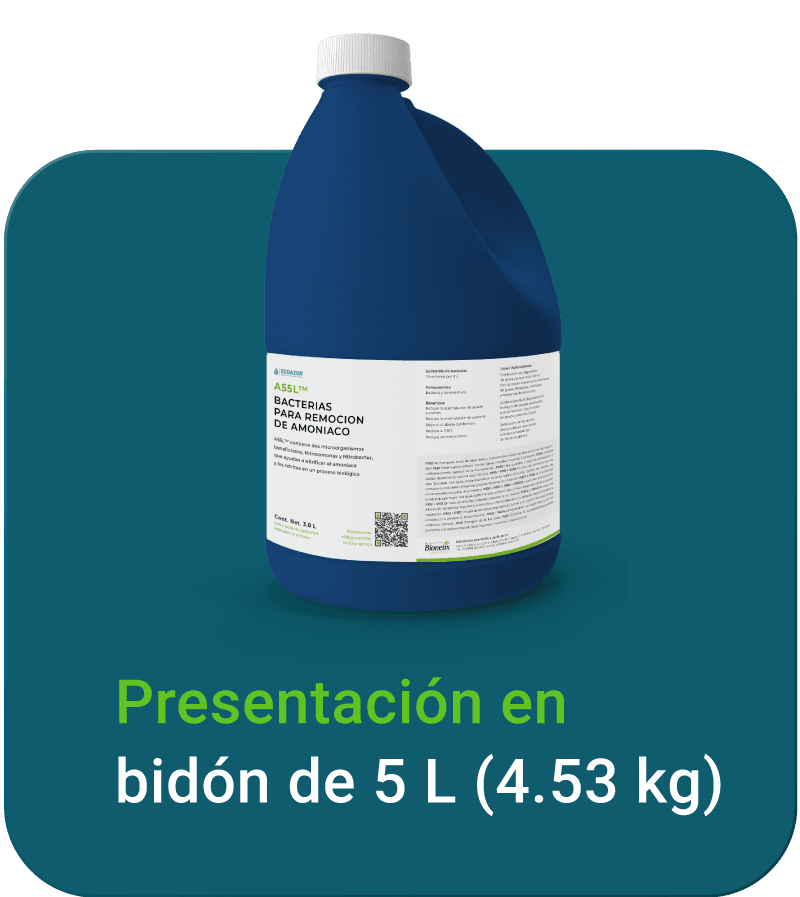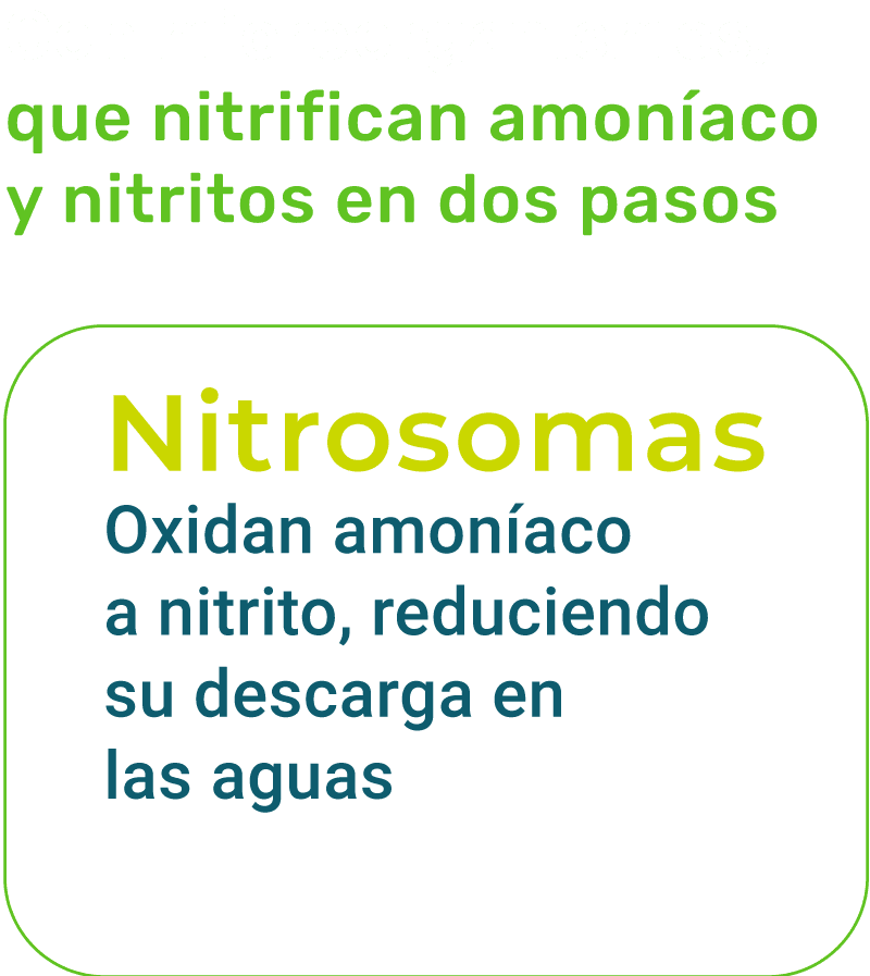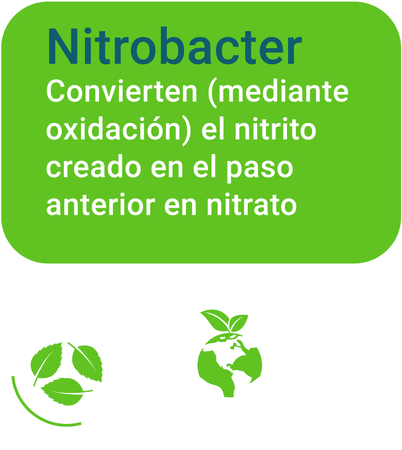 A55L™ contiene los microorganismos Nitrosomonas y Nitrobacter, que nitrifican el amoníaco y nitritos en dos pasos. Nitrosomonas oxidan el amoníaco a nitrito usando oxígeno en las aguas residuales, reduciendo los niveles de amoníaco. Luego, Nitrobacter convierten el nitrito en nitrato. Estas bacterias aeróbicas requieren oxígeno disuelto y no funcionan en condiciones anaeróbicas o con poco oxígeno.