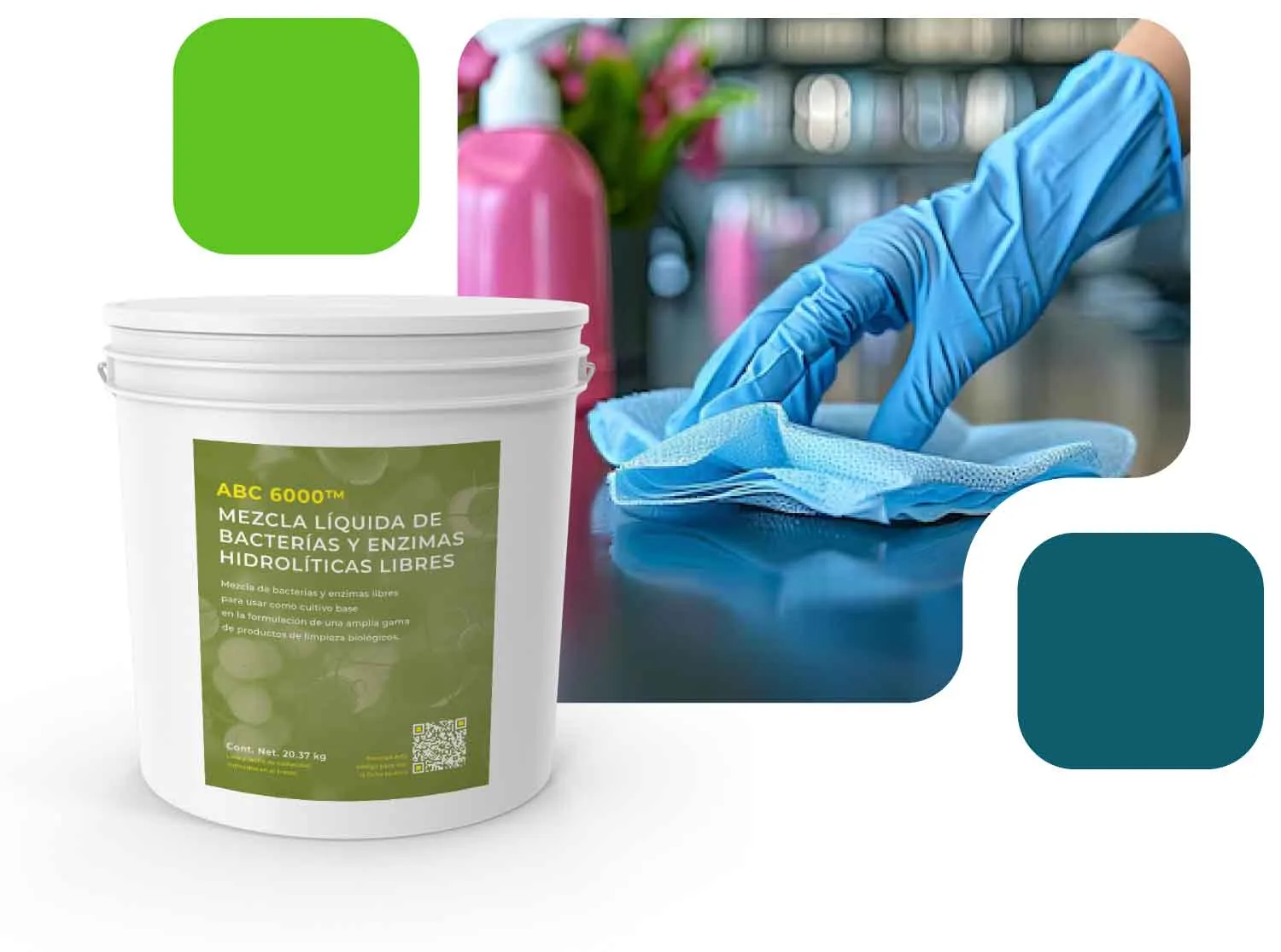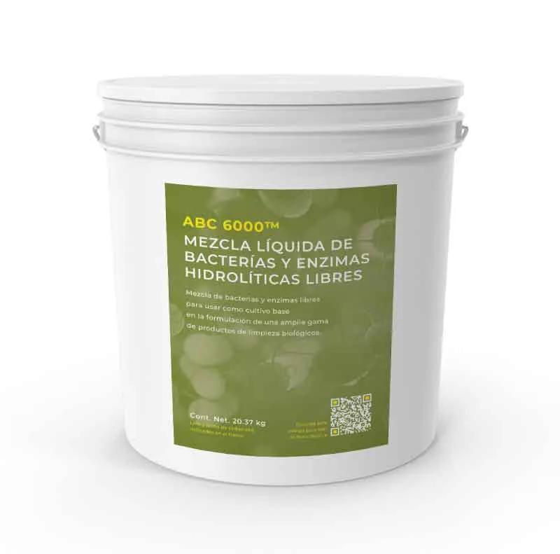 ABC 6000™ es una mezcla de bacterias y enzimas (proteasa, amilasa, celulasa, y lipasa) ideal para formulaciones de limpieza biológica. Estas bacterias no patógenas y enzimas eliminan olores en desechos orgánicos, solubilizando grasas, aceites, almidones, proteínas y celulosa sin olor residual. Su formato líquido y preestabilizado facilita la formulación y reduce costos de inventario y envío.