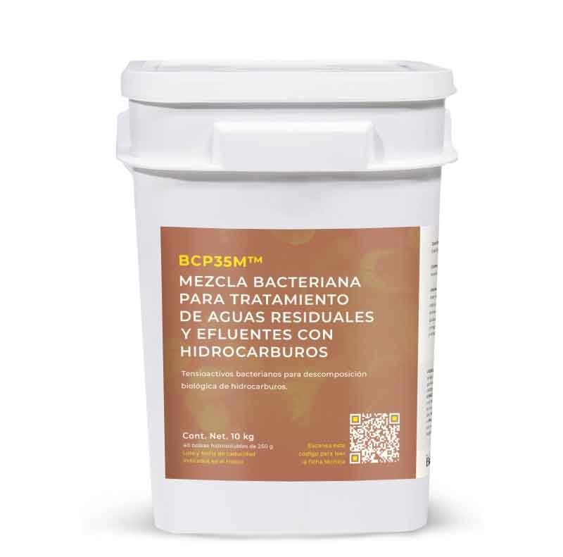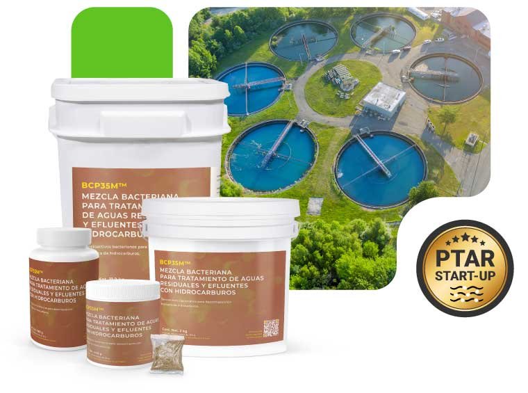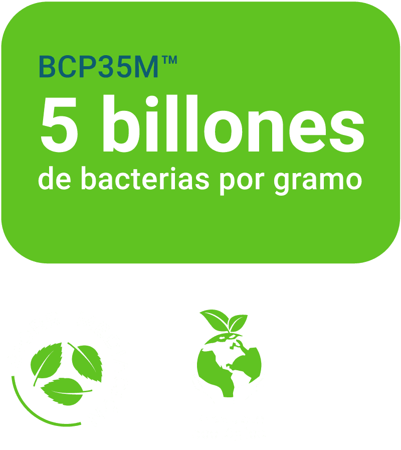 BCP35M™ contiene microorganismos aeróbicos y anaeróbicos facultativos que digieren DBO, DQO y hidrocarburos. Las bacterias producen ramnolípidos, tensioactivos que mejoran la descomposición de hidrocarburos al fragmentarlos en gotas más pequeñas, aumentando la biodisponibilidad y eficiencia de las bacterias patentadas para su digestión.
