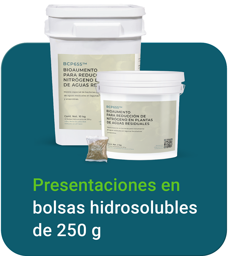 BCP655™ es una mezcla especial de bacterias para el tratamiento de aguas residuales en lagunas facultativas y anaérobias, capaces de consumir nitrógeno orgánico e inorgánico como amoniaco, nitrato y nitrito como fuente de nitrógeno.