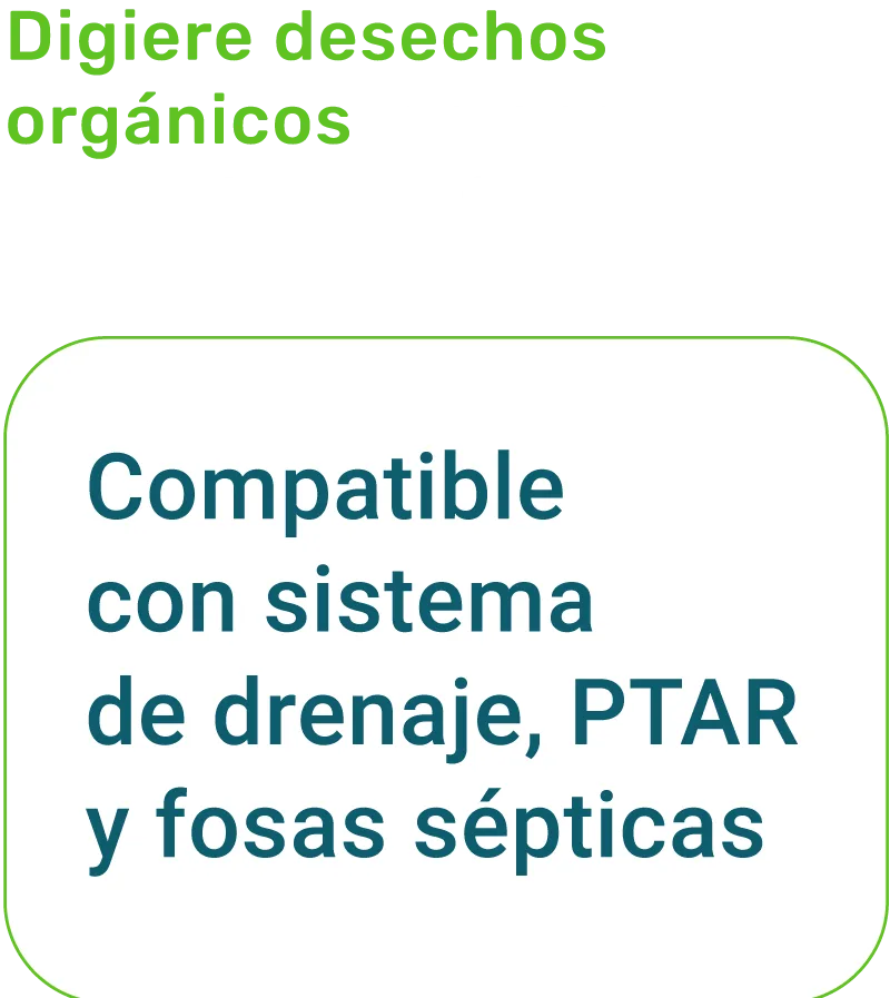 Compatible con sistemas de drenaje, fosas sépticas y PTAR.