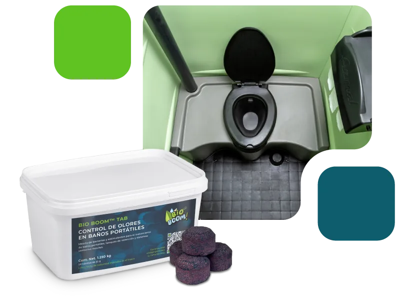 Bacterias para el control de olores, degradación de papel y sólidos en baños portátiles, con acción prolongada y fragancia natural.