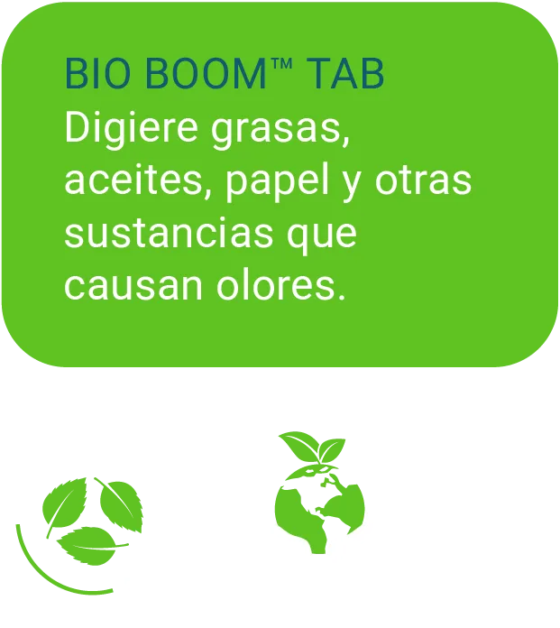 Digiere grasas, aceites, residuos de jabón no disueltos, papel y otras sustancias que causan olores.