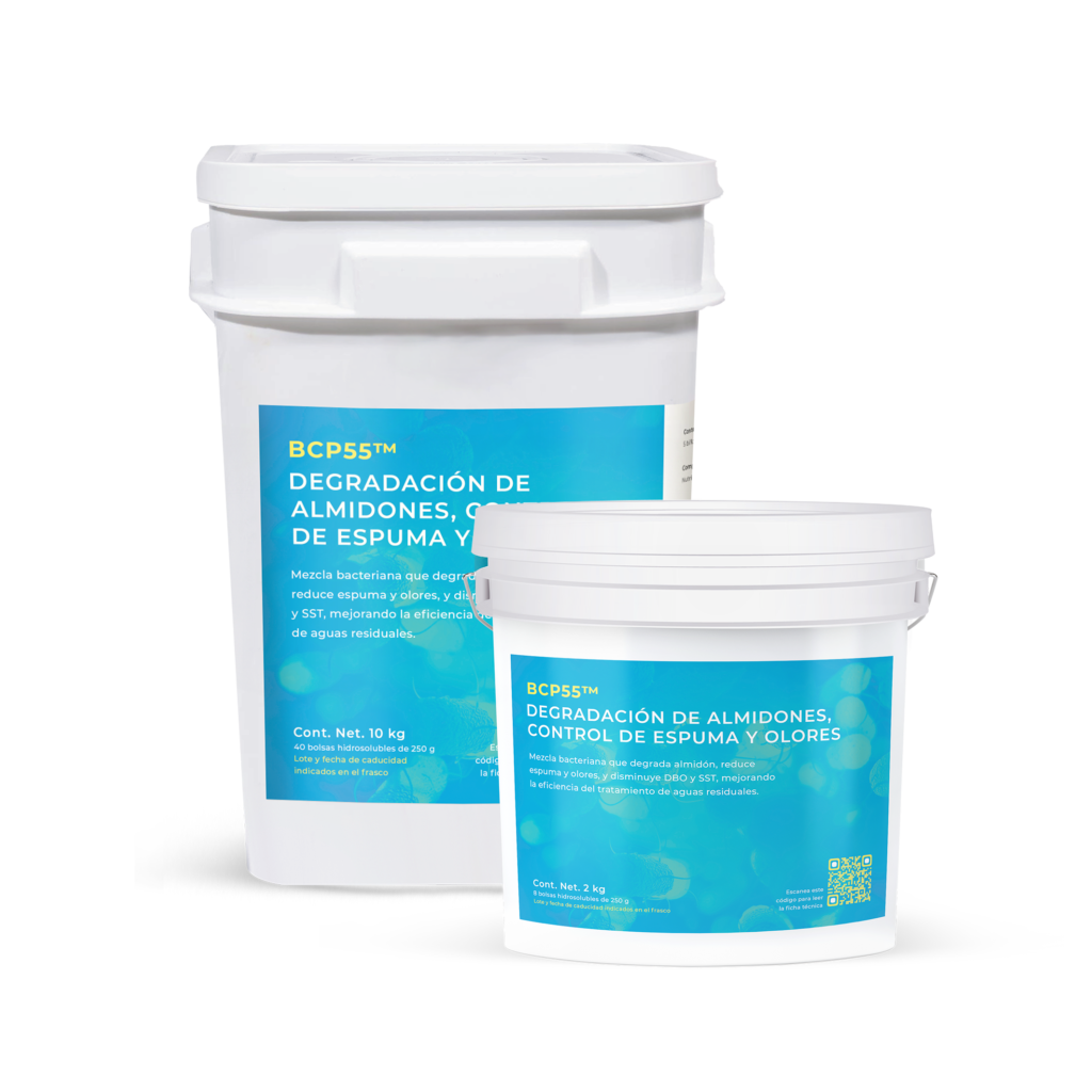 BCP55 contiene una mezcla bacteriana especial que degrada el almidón y aumenta la eficiencia del tratamiento de aguas residuales. BCP55 reduce la espuma, los olores desagradables y las concentraciones de DBO y SST. Puede utilizarse para resembrar plantas tras un problema o para ayudar a las nuevas a germinar.