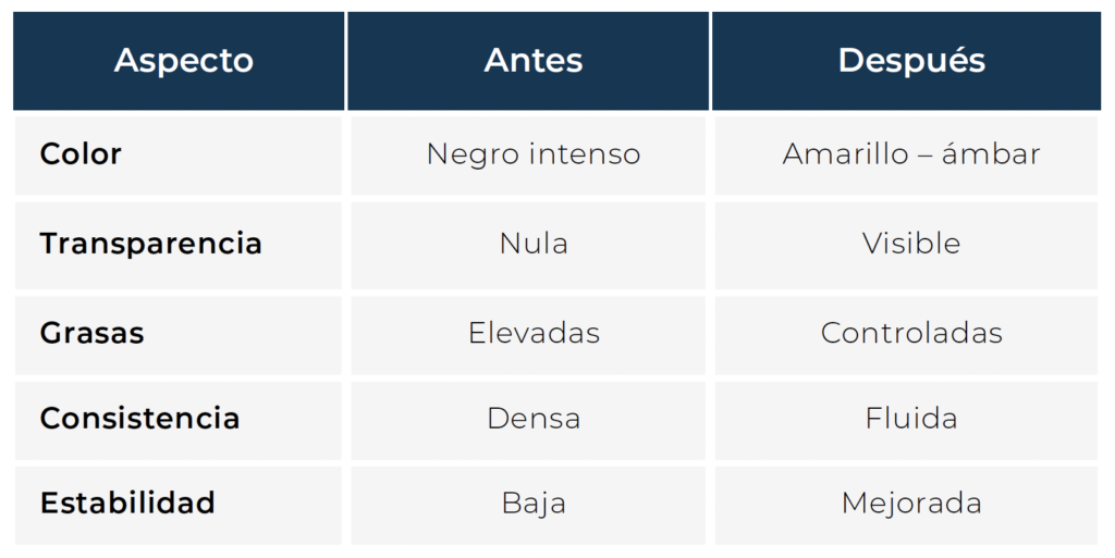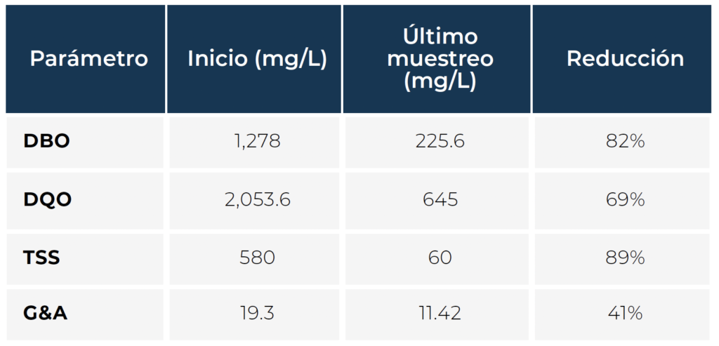• 89% de reducción en TSS: digestión y clarificación significativamente mejoradas.