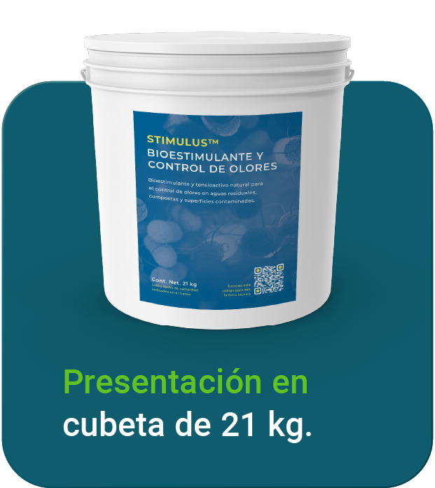 STIMULUS™ es un bioestimulante natural con tensioactivos y extractos de plantas, ideal para el tratamiento de aguas residuales y residuos agrícolas. Inhibe la formación de olores, mejora la actividad microbiológica y proporciona nutrientes a las bacterias para estimular el compostaje. Además, reduce el nivel de amoníaco al formar complejos y bloquea la liberación de amoníaco, disminuyendo su impacto ambiental.